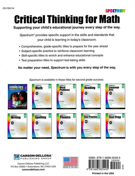 Read Online Spectrum Critical Thinking for Math, Grade 2 Paperback